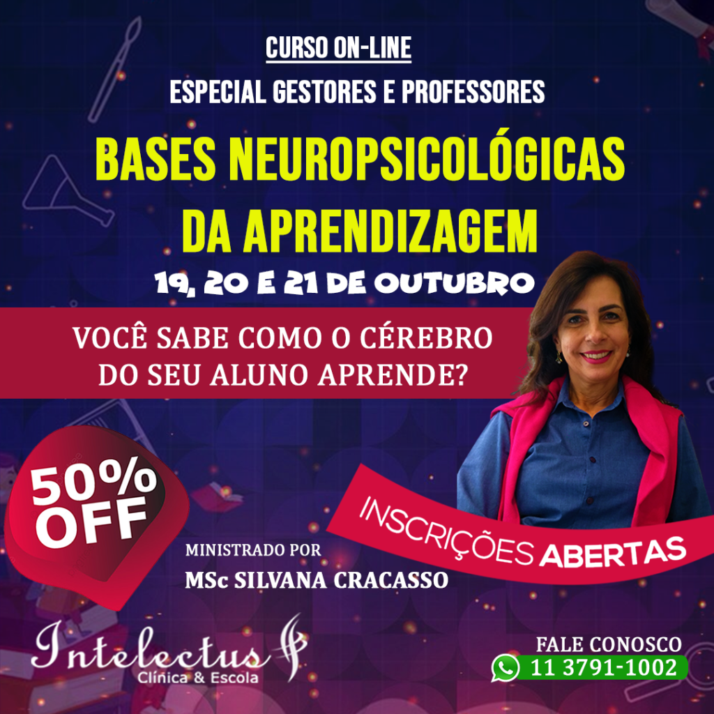 Silvana P. Cracasso: Mestre em ciências da Saúde; especialista em Neuropsicologia pela Universidade Federal de São Paulo UNIFESP. Pós-graduada em Psicopedagogia com aprimoramento em Reabilitação cognitiva e TDAH pelo Núcleo de Avaliação Neuropsicológica Infantil NANI. Foi Membro por 8 anos da equipe Cuca Legal PROESQ/UNIFESP; pesquisa e desenvolvimento de projeto em saúde mental nas escolas. Mediadora do Programa de Modificabilidade Cognitiva PEI. Sócia Fundadora da INTELECTUS Clínica Escola. Palestrante e ministrante de cursos com temas que envolvem Saúde Mental e Emocional. O Curso acontecerá através da plataforma Zoom, das 19h às 22h, podendo se estender um pouco. Você deve reservar este horário, organizando sua rotina familiar para estar ao vivo às 19h. A senha de acesso será enviada no dia do curso, para aqueles que efetuaram o pagamento. Para ingressar na plataforma, você receberá o link e senha de acesso através do seu WhatsApp ou e-mail.